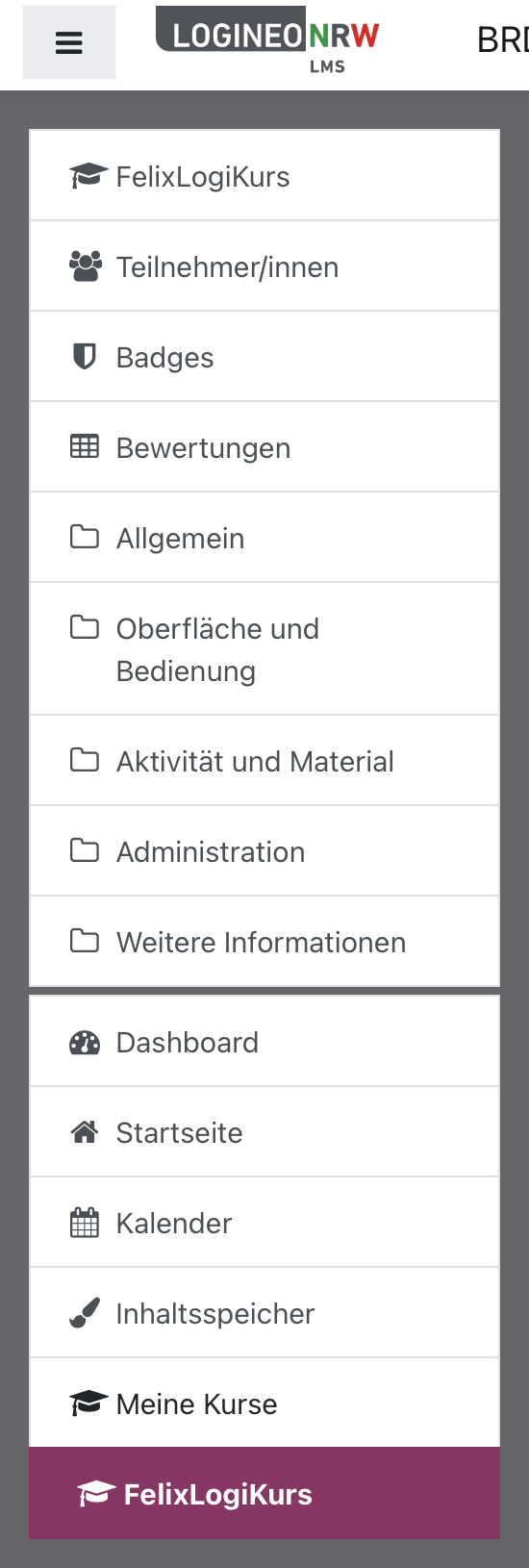 - die drei Striche (Hamburger Menü) ermöglichen durch einen Klick das Auf- und Zuklappen des linken Menüs